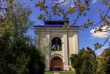 Дзвіниця — надбрамна двоярусна є характерною пам'яткою українського бароко початку XVIII ст. В нижньому ярусі розташована парадна брама монастирського комплексу. У верхньому — власне дзвіниця. Аналогічні споруди можемо бачити у Києво-Печерській лаврі (значно багатше декоровані дзвіниці другої половини XVIII ст. на Дальніх та Ближніх печерах). Значення споруди полягає в тому, що на відміну від, скажімо, дзвіниці Корецького монастиря, дзвіниця в Жидичині не зазнала пізніших перебудов. Поблизу дзвіниці збереглися залишки оборонного валу, що оточував монастир.