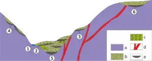 - vena profunda — глибока жила, що за сучасною термінологією відповідає похилим і крутоспадним жилам;