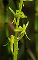 Суцвіття — китиця завдовжки до 8 см, яка складається з 2-18 зеленкуватих або жовтувато-зеленкуватих зигоморфних квіток на коротких квітконіжках. Зрідка можуть бути і поодинокі квітки. Приквітки маленькі, трикутні або яйцеподібно-ланцетні, плівчасті, не довші за квітконіжки. Зовнішні листочки оцвітини трижилкові, лінійно-довгасті, внутрішні — одножилкові, вузьколінійні. Губа майже дорівнює за довжиною іншим листочкам оцвітини, здебільшого догори обернена. Плід — коробочка.