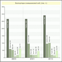 Українські експортери продемонстрували, що вони можуть за сезон поставляти на зовнішні ринки майже 3 млн т соняшникової олії. 51,1 % світового експорту. Більше 3,2 млн т соняшникового борошна (23 % світового експорту). Україна, поряд із ЄС, Аргентиною, Туреччиною та Росією, входить до четвірки найбільших світових країн-виробників соняшникової олії (частка України за 2011/12 маркетинговий рік в світовому обсязі виробництва становить 23,3 %) та є головним експортером продукції соняшникового комплексу.