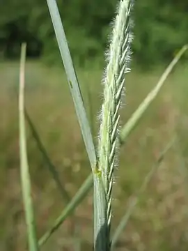 Багаторічний злак. Утворює довгі повзучі кореневища. Стебла 40–75 см висоти. Листя сизо-зелені, здебільшого згорнуті, до 4 мм ширини, знизу голі, зверху коротко-запушені; піхви голі, зрідка у нижніх листків білоповстисті. Колосся (6)8–17 см довжини, (7)10–20 мм ширини. Колоски 7–12 мм довжини, 5–7(10)-квіткові, широко розставлені в нижній частині колос; колоскові луски ланцетно-шилоподібні, остювато загострені, по кілю голі або волосисті; нижня квіткова луска без ості, 5–8 мм довжини, переважно густоволосиста; верхня квіткова луска дорівнює нижній, на кілях гола або рідковійчаста. Пиляки 5 мм довжини. Цвіте в травні-червні. Анемофіл. 2n=28.