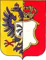 - Герб австрійського періоду має вигляд розділеного навпіл щита, на якому зображені половини гербів Собеських і Радзивіллів.