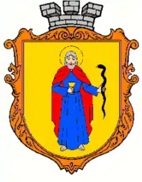- Сучасний герб: на золотому полі Святий Партеній, що тримає в правій руці золоту чашу, у лівій — чорну змію. Одяг синій, плащ червоний. Щит обрамлений декоративним картушем і увінчаний срібною міською короною з трьома зубцями.