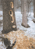 - Жовна п'є ту дощову воду, що накопичується в поглибленнях на корі старих дерев і в їхніх дуплах.