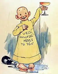 Як і газетні малюнки, так і комікси у той час були чорно-білими, але вбрання головного героя було розмальоване у жовтий колір. Персонаж розважав читачів своїм смішним виглядом, ексцентричними вчинками і комічними міркуваннями на різні теми.
