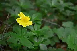 Багаторічник з типовим гладким горизонтальним кореневищем, доволі крихким і ламким. Стебла завдовжки 20-50 см, прямостоячі, прості або слабко розгалужені. Має чергове листкорозміщення. Базальні листки мають довгі черешки. Квітки доволі великі (діаметром 3-4,5 см), жовті, правильні, п'ятичленні. Плід — багатогорішок.