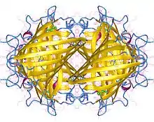 - Rekas A, Alattia JR, Nagai T, Miyawaki A, Ikura M (2002). Crystal Structure of Venus, a Yellow Fluorescent Protein with Improved Maturation and Reduced Environmental Sensitivity. J Biol Chem. 277 (52): 50573–8. PMID 12370172.