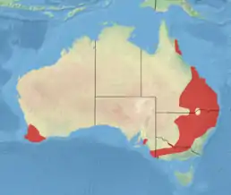 ![]() Розповсюдження жовтоногої сумчастої миши | ||||||||||||||||