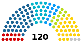 - 2015 — шосте скликання. Вибори відбулись 4 жовтня. Відповідно до нового виборчого права, для проходження до парламенту партії мають набрати 7 % голосів від числа тих, хто голосував, і 0,7 % у кожній області[2]. Відповідно до офіційних даних до лав парламенту увійшли 6 партій[3].
