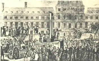 Перша страта злочинця — Жака Пелет'єра відбулася 25 квітня 1792 р. Хоча спочатку прилад присутнім, звиклим до видовищніших страт, не сподобався, все ж з часом і особливо під час революційного терору гільйотина стала досить звичною в багатьох містах Франції. Спочатку її називали кількома іменами й зокрема луїзеттою на честь лікаря Антуана Луї, який безпосередньо брав участь у розробці цього приладу. Згодом всі інші імена позабувалися окрім «гільйотини» на честь д-ра Гійотена, попри гучні протести самого автора ідеї. Ця назва, на превеликий жаль самого Гійотена, стала загальноприйнятою назвою цього зловісного приладу не тільки у Франції, а й поза її межами.