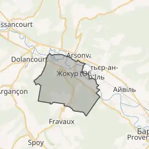 - Розташування муніципалітету Жокур на мапі Франції та сусідні муніципалітети