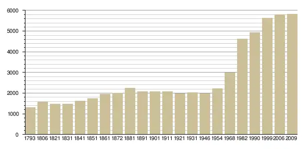 Динаміка населення (INSEE [3] і Ldh/EHESS/Cassini [4]. ):