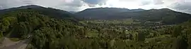 ![]() Панорама села Жорнава. Вигляд на залізничну лінію Самбір — Чоп | |