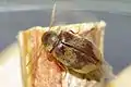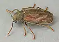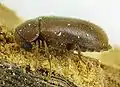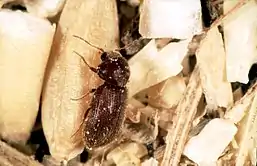 ![]() Хлібний точильник Stegobium paniceum віддає перевагу деревині верби, а також фанері. Втім, він залюбки живе у сухому хлібі, їсть клей за шпалерами та у обкладинках книг [1] | ||||||||||||||||||