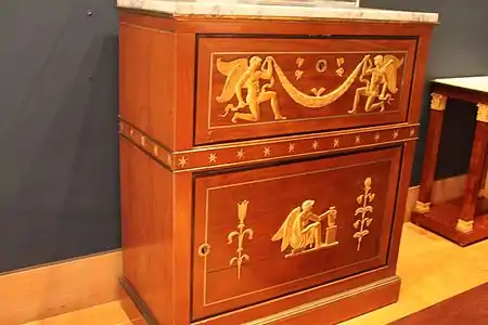 Нічний столик. Червоне і чорне дерево, мідь, позолочена бронза, мармур.