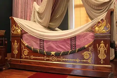 Ліжко. Червоне дерево, позолочена і патинована бронза.