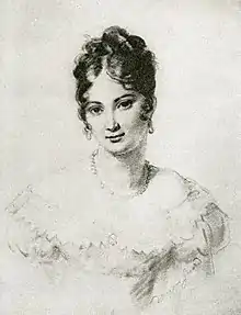 Жульєтта Рекам'є, малюнок Пульхерії Ніколь Едм Брюляр де Жанлі, графині де Валанс, бл. 1810.