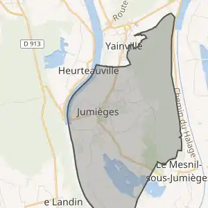 - Розташування муніципалітету Жум'єж на мапі Франції та сусідні муніципалітети