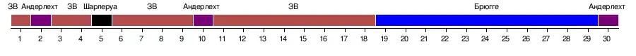 | Андерлехт | 0:0 | 2:2 | 2:0 | 1:1 | 4:2 | 0:0 | 3:2 | 5:1 | 2:0 | 1:0 | 3:0 | 3:1 | 7:0 | 1:2 | 4:0 | |