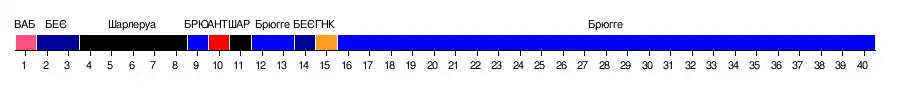 | Шарлеруа | 1–0 | 2–0 | 1–1 | 3–1 | 1–1 | 0–2 | 1–2 | 0–1 | 2–3 | 1–1 | 0–0 | 0–1 | 1–1 | 1–0 | 3–0 | 0–0 | 1–2 | — |
