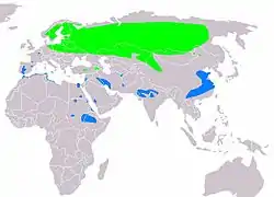 ![]() Ареал журавля сірого: Місця гніздування