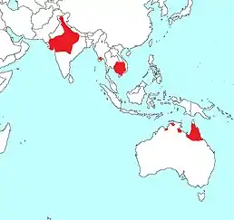 Поширений в Південній і Південно-Східній Азії: на рівнинах півночі, північного заходу і заходу Індії, в тераях Непалу, в країнах Індокитаю — М'янмі, В'єтнамі та Камбоджі. Невеликі групи журавлів відзначені в Пакистані. У китайській провінції Юньнань і Лаосі популяція індійський журавлів або повністю зникла, або знаходиться на межі зникнення. Також із середини XX століття не реєструються випадки перебування птахів в Таїланді. У 1967 році новий підвид G.a.gilli був виявлений і зареєстрований на північному сході Австралії.[2] Вважають, що раніше індійський журавель жив і на Філіппінах, де знаходять останки окремого підвиду G. a. luzonica, в даний час вимерлого.