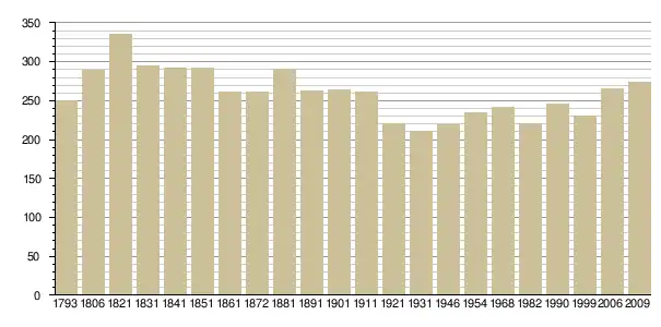 Динаміка населення (base Cassini de l'EHESS pour les nombres retenus jusque 1962[3], base Insee à partir de 1968 (population sans doubles comptes puis population municipale à partir de 2006)[4] · [5] ):