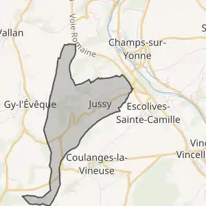 - Розташування муніципалітету Жуссі на мапі Франції та сусідні муніципалітети