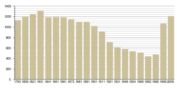 Динаміка населення (Des villages de cassini aux communes d'aujourd'hui[3] ):