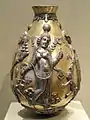 Срібна посудина із зображенням напівоголеної жінки