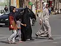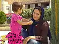 Сім'я в місті Шуш, видна різниця в суворості дотримання форми одягу між матір'ю і її старшою дочкою