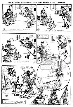 1903 року від Національного союзу жіночих товариств відкололось кілька організацій, що об'єднались під началом Еммелін Панкгерст у Суспільно-політичний союз жінок (WSPU). Оскільки національні засоби масової інформації втратили інтерес до руху, нвоутворений союз вирішив діяти іншими методами. Нову тактику вперше було застосовано 1905 року під час виступу сера Едварда Ґрея, члена щойно створеного ліберального уряду. Під час його промови дві активістки постійно вигукували «Чи надасть ліберальний уряд право голосу жінкам?». Після відмови припинити галас було викликано поліцію. Суфражетки (як їх називали газети після інциденту) чинили опір та були заарештовані й звинувачені в нападі. Сплатити штраф вони відмовились, через що потрапили до в'язниці. Шоковане британське суспільство звернуло увагу на новий спосіб боротьби за права жінок.