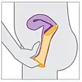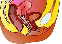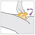 Товсте, внутрішнє кільце з закритим кінцем помістіть у вагіну та зафіксуйте. Тонке зовнішнє кільце залишається зовні, прикриваючи вхід у вагіну.