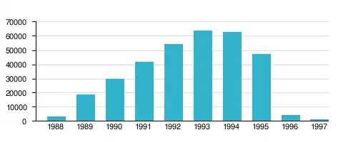 Виробництво автомобілів Таврія у 1988–1997 рр. (шт.)[7]