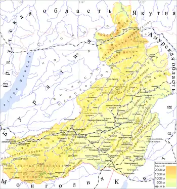 Межує з Амурською і Іркутською областями, республіками Бурятія і Якутія, має зовнішній кордон з Китаєм і Монголією.
