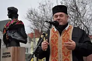 ![]() о. Володимир Заболотний під час вшанування 100-річчя з дня смерті Катерини Рубчакової у Чорткові | |