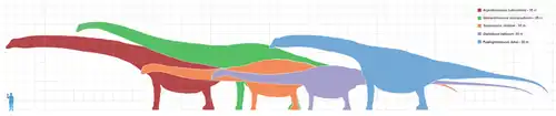 Будову цієї істоти вчені відтворили по чотирьом його хребцям, які дійшли до нас через 110 млн років. Ці хребці вражають своїми розмірами: один із них досягає 140 см в довжину. Відповідно, шия тварини могла досягати 10 м. Довжина тіла — від голови до хвоста — сягала 30 м або близько цього, а голова піднімалась над землею на 18 м, що дозволяло цьому рослиноїдному ящероногу щипати зелень навіть з верхніх частин деревовидних папоротей і хвойних дерев.