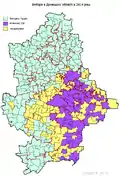 ![]() Фіолетовим позначено окуповані терористами території, де проводились «вибори» | ||||