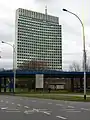 ![]() Вигляд хмарочоса з північного боку трамвайної станції «Загрепчанка» | |