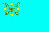 Прямокутне полотнище блакитного кольору. У лівій верхній частині розміщено дві яблуневі гілки з квітами, що схрещенні між собою, а між ними – жовті плоди яблук, що символізує розвиток та процвітання садівництва.
