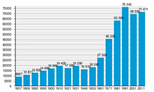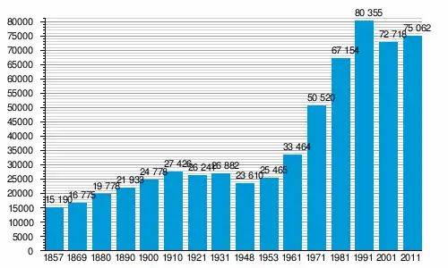 Населення громади за даними перепису 2011 року становило 75 062 осіб[7], 8 з яких назвали рідною українську мову[8]. Населення самого міста становило 71 471 осіб.[7]