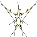 Ідеальна конфігурація — це розташування прямих, які попарно перетинаються і кожен відрізок є стороною, а дві відповідні прямі є частиною щонайбільше двох пар трикутників, що мають спільну сторону.
