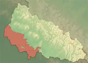 ![]() Закарпатська низовина на рельєфній карті України | ||||