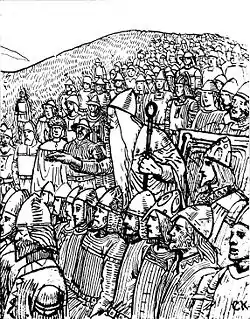 Закономовець (лагман) показує силу закону королю Швеції в Старій Уппсалі, в 1018 р.. Лагман спонукає короля Улофа III Шетконунга не лише до миру з ворогом королем Святим Олафом, але й віддати свою доньку йому заміж — художник Крістіан Крог