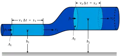 де S — площа поперечного перерізу потоку рідини, у перпендикулярній до напрямку швидкості площині,