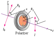 де — інтенсивність падаючого на поляризатор світла, — інтенсивність світла, що виходить з поляризатора, — коефіцієнт пропускання поляризатора.