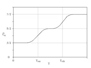 Наприклад, для двоатомних молекул при низьких температурах заморожені всі ступені вільності, крім пов'язаних із поступальним рухом молекули як цілої. При певній температурі збуджується обертання, і теплоємність зростає, при ще вищій температурі енергія теплового руху достатня для збудження коливань, що призводить до нового зростання теплоємності.