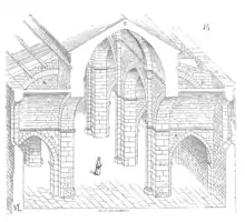 Влаштування трьохнавного романського храму. Середня нава виділена висотою. Псевдобазиліка.