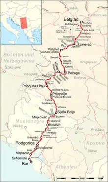 - Beograd-Bar-Bahn in der Enzyklopädie Zur Eisenbahngeschichte des Alpen-Donau-Adria-Raumes von Elmar Oberegger