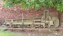 Залізничний плуг з Військового музею в Белграді. Гак можна підняти для перевезення плугу та опустити для руйнування колії.